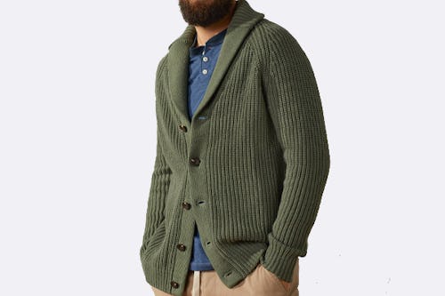 The cardigan has gone from a favorite of Mr. Rogers to a modern and cool layering option for men, especially with a bit of rugged appeal via a shawl design. The extra collar fabric adds an element of warmth, and the marled cotton texture of this Faherty option primes it for fall cabin getaways aplenty. Wear it over a super-soft Faherty flannel shirt for unbeatable warmth.
