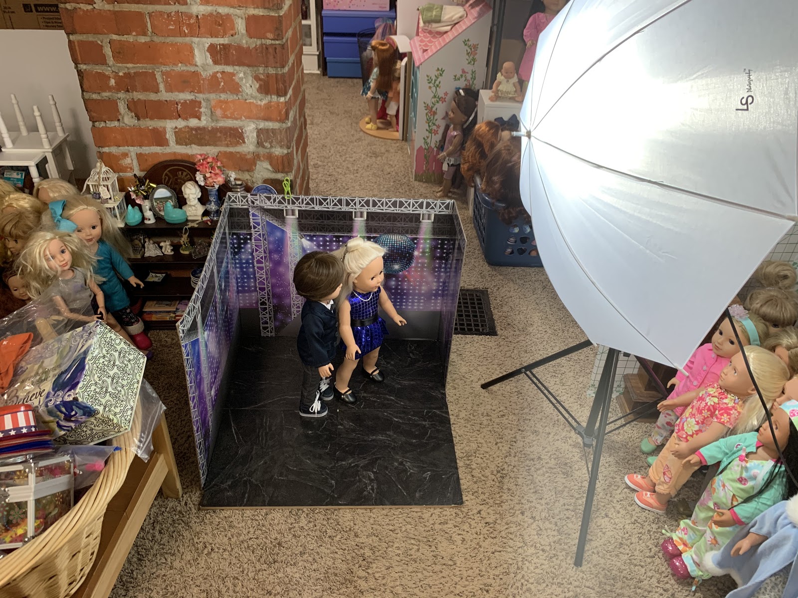 To the left of Josh and Heather Dolls portrait time is Heather Doll's Bedroom. That is one room that never comes down... And right now it has a whole bunch of dolls standing in it. Hahaha.
