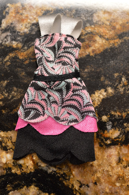 The dress for the Ghoulia doll from Scaris, City of Frights. You can see a faint rib cage on the front of the dress that has wore off.