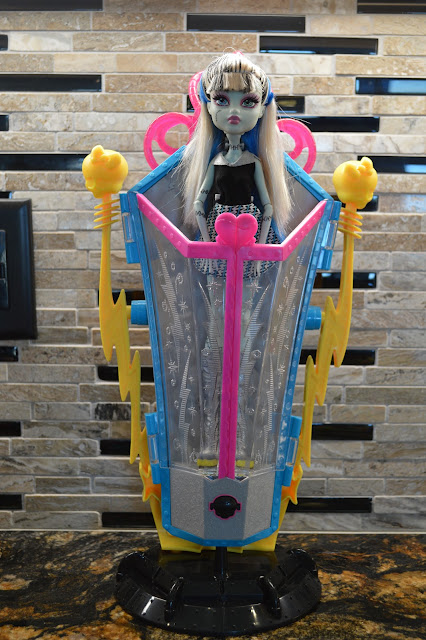 And this Frankie. This is the very first doll I showed in the last post. She is another Ghoul Sprirt Frankie wearing her Home Ick set dress. (In her Home Ick class she sews, makes perfect sense right?) And she is in the Freaky Fusion Recharge Chamber!