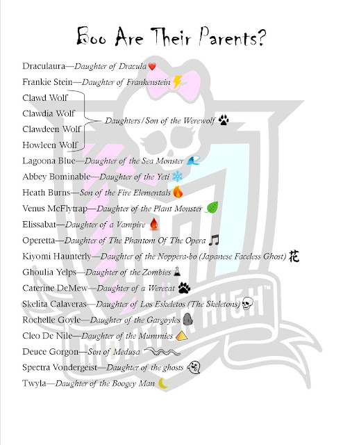 Do you ever wonder who they are the children of? Like, Frankie Stein is easy. But how about the others? I made a handy chart with some of our most popular ghouls on it.