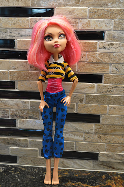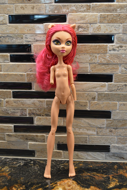 OKAY, I may have been a little overzealous with the straw curlers on this Howleen. This is actually Dance Club Howleen (as she as bangs) and the other Howleen above is the actual Ghoul Fair doll. But this Howleen had better hair and all her body parts. And her bangs got a little weird. I will fix those in time but for right now I used some pink bobby pins I had to get them to stay back.