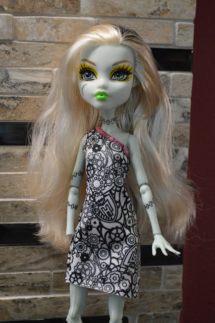She's missing a hand, might add one from another Frankie. I gave her the dress from the Designer Booo-tique. The only one that wasn't colored!