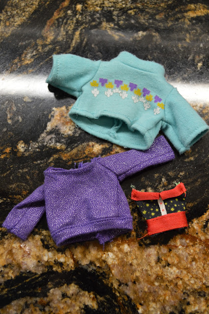 And three shirts that were thrown in. Must be for a Barbie and I'm not sure about the tiny red and black one. Could be for a Kelly.